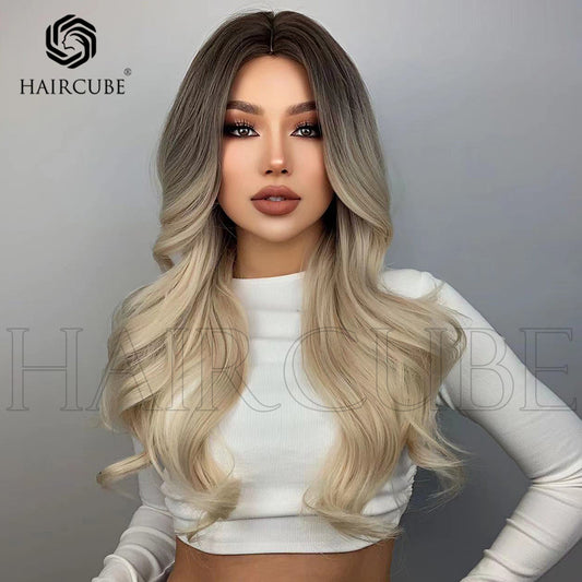 Hair Wigs Elegant Style , Gradient off-white Long Curly Hair Wigs